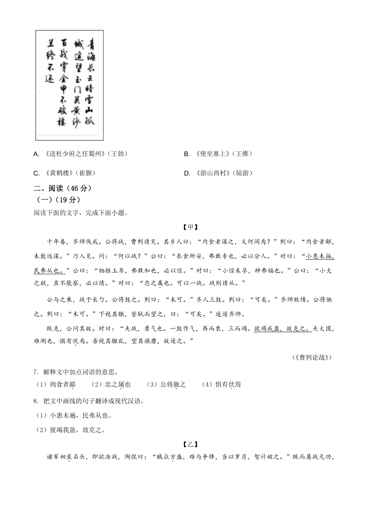 下载精品解析:广东省2021年中考语文试题(原卷版)PDF格式或doc