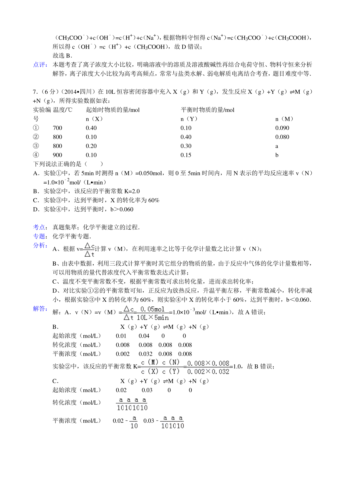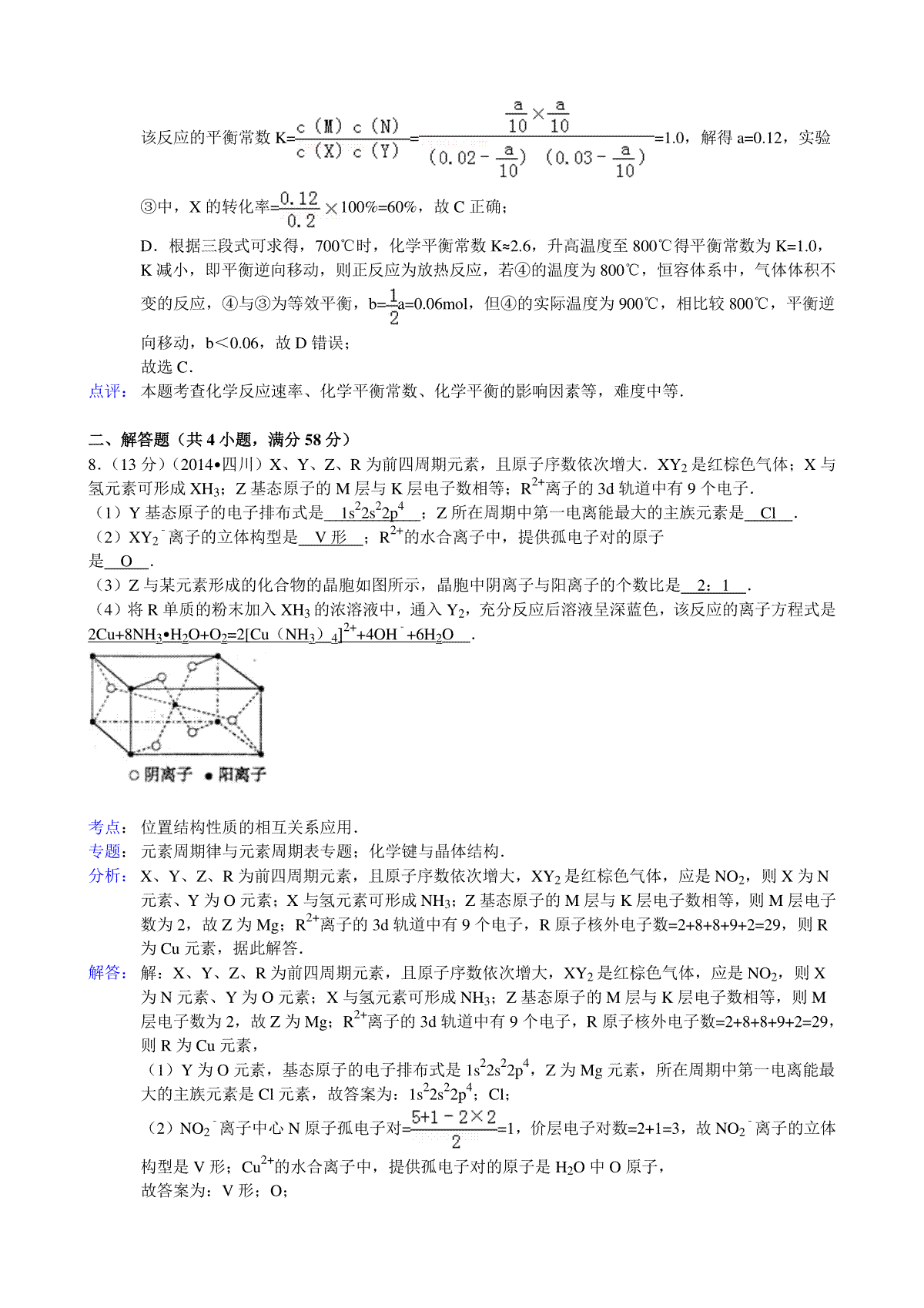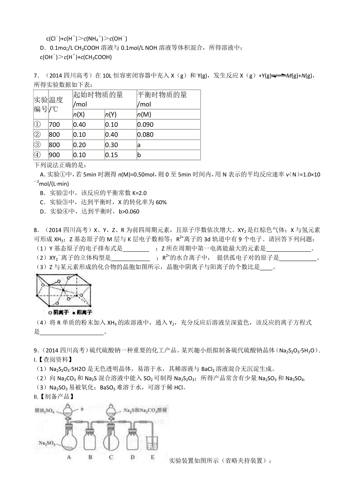 一、2014年高考四川理综化学试题和参考答案