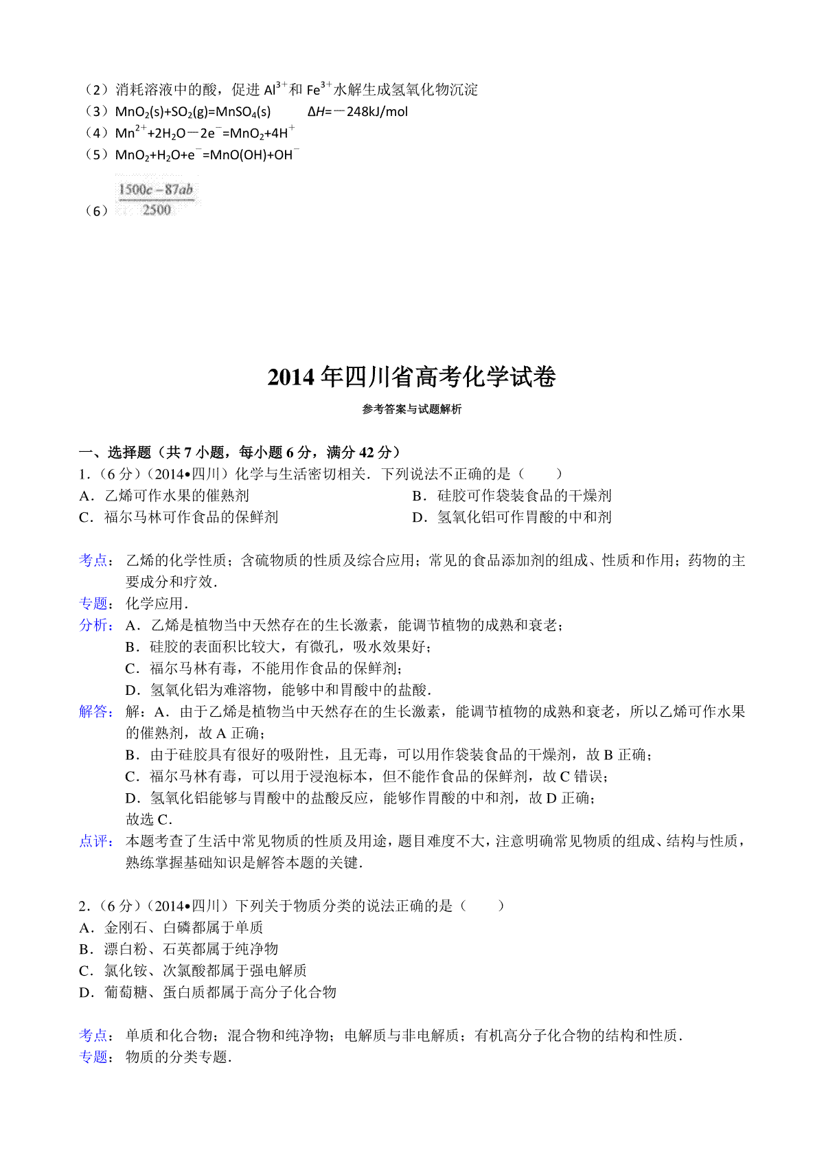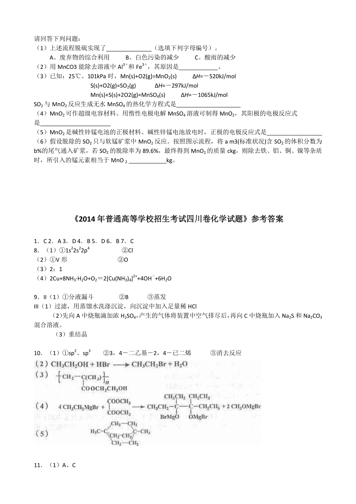 如果你想下载2014年高考四川理综化学试题和参考答案DOC或PDF版,请点击本文末链接!