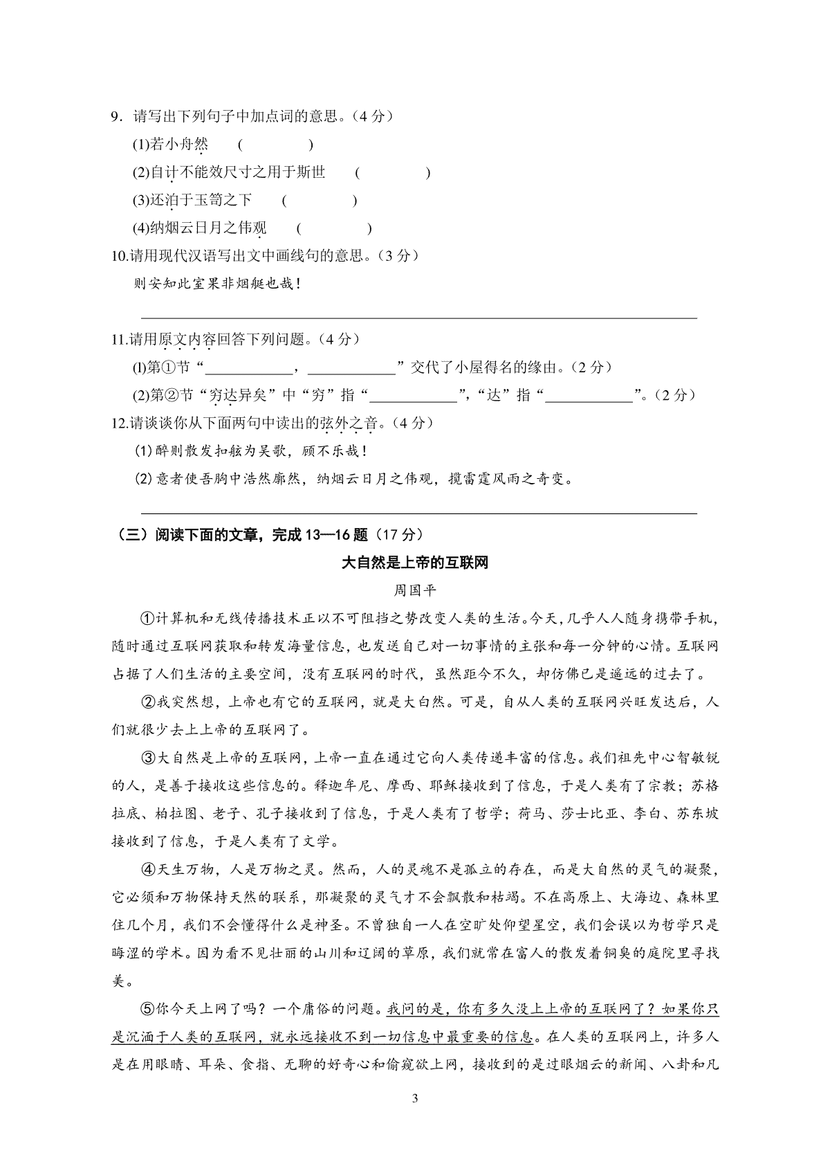 3.2014年江苏省南通市中考语文试题及答案