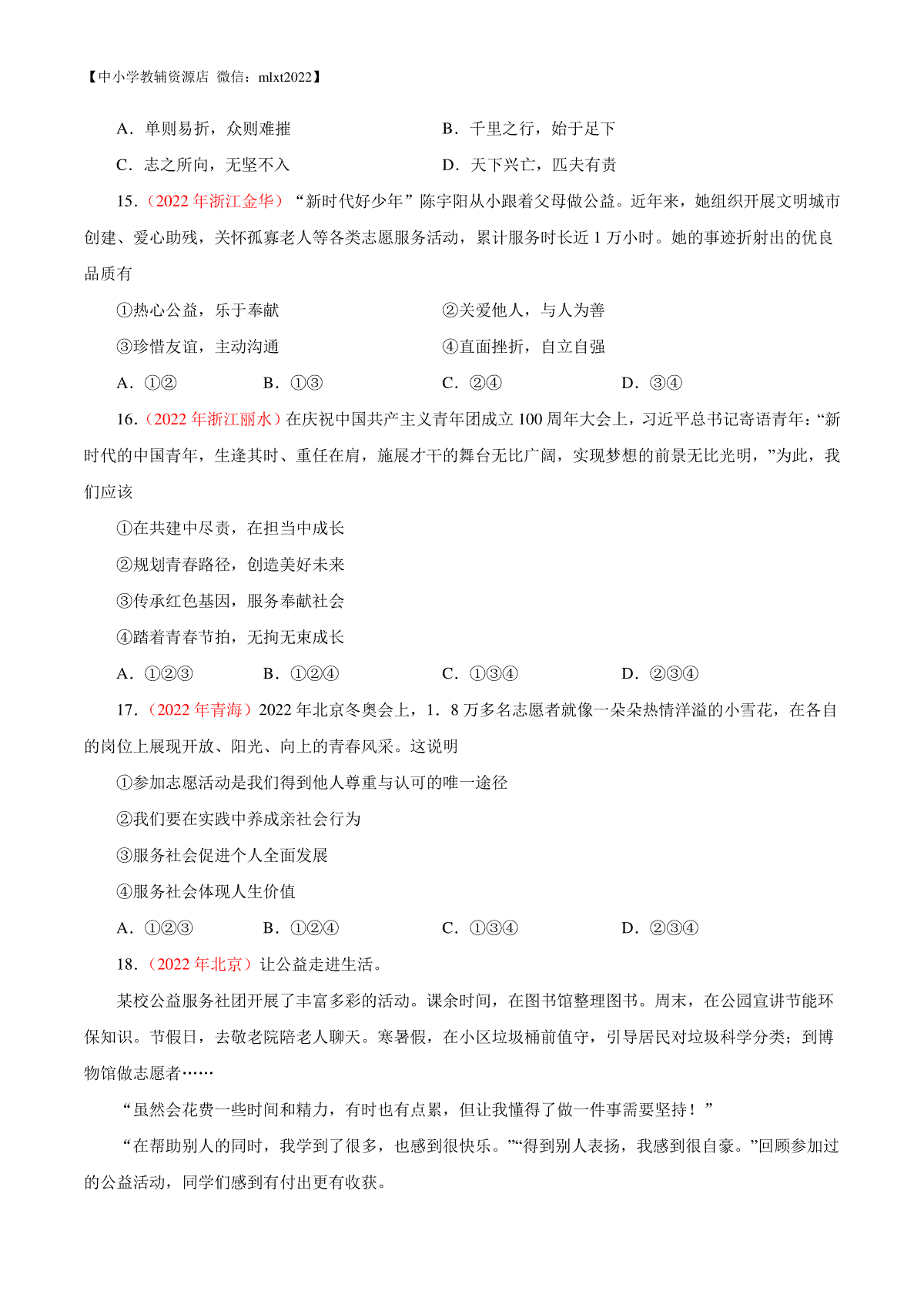 如果你想下载专题11 勇担社会责任(第02期)-2022年中考道德与法治真题分项汇编(全国通用)(原卷版)DOC或PDF版,请点击本文末链接!