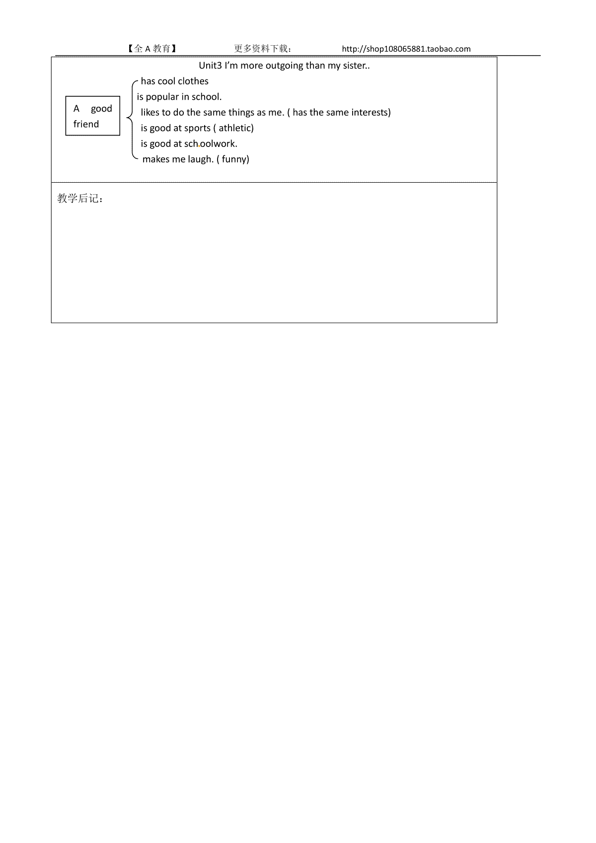 一、八年级英语教案:Unit 3 I’m more outgoing than my sister3