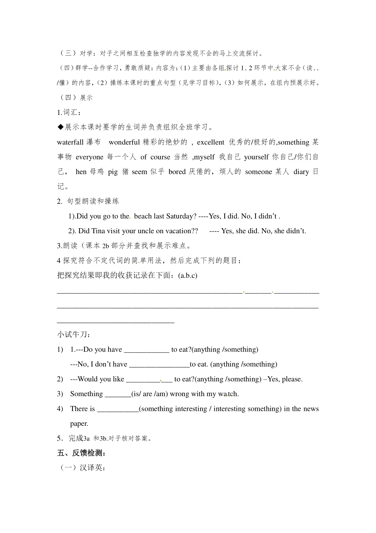 一、八年级英语上册导学案:Unit 1 Where did you go on vacation Per