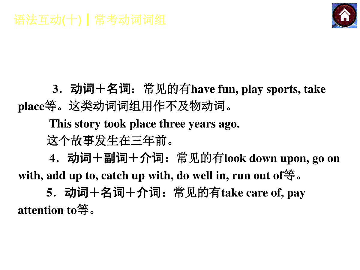 一、【中考复习方案】(人教版)九年级英语复习课件:语法互动十 常考动词词组(共14张PPT)