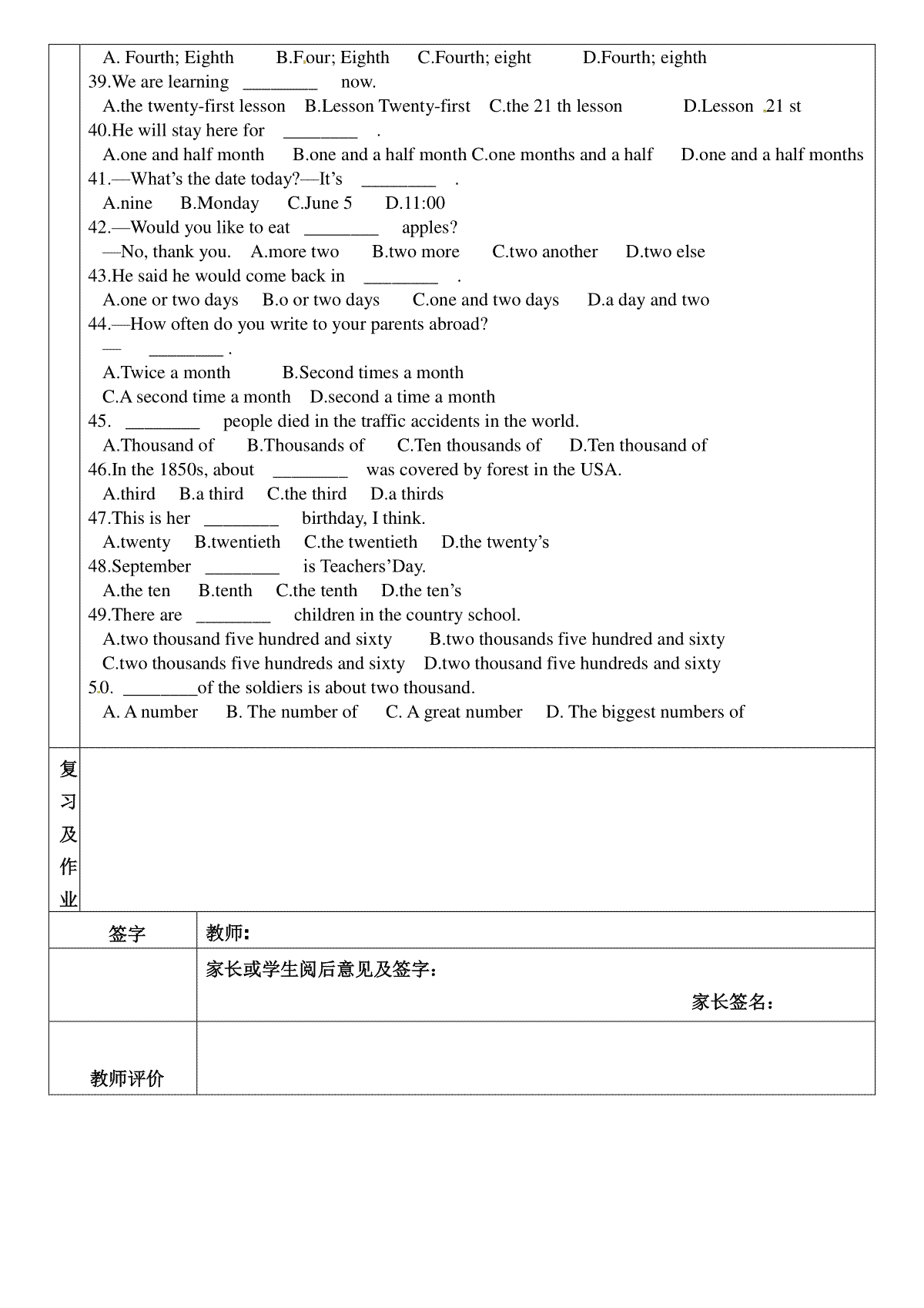 2.(人教版全册)九年级中考英语专题复习:数词配套练习