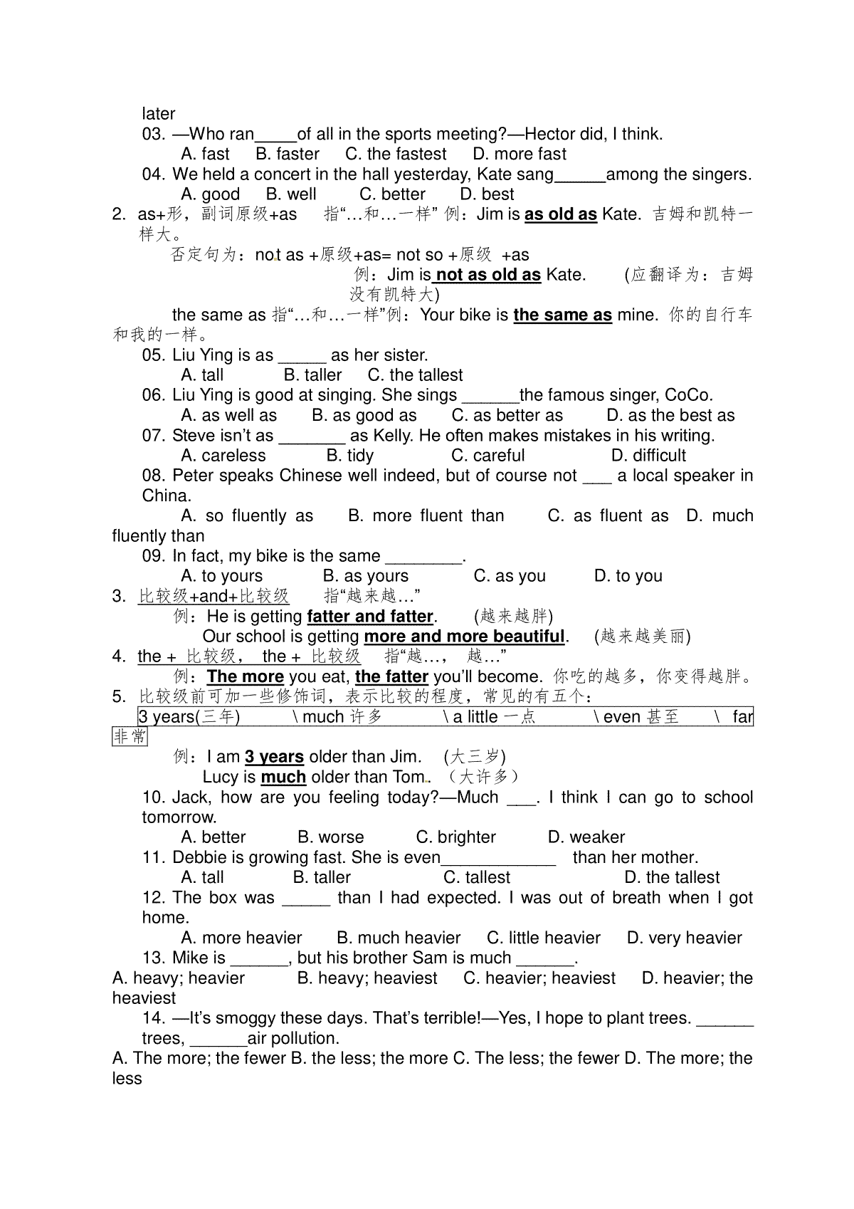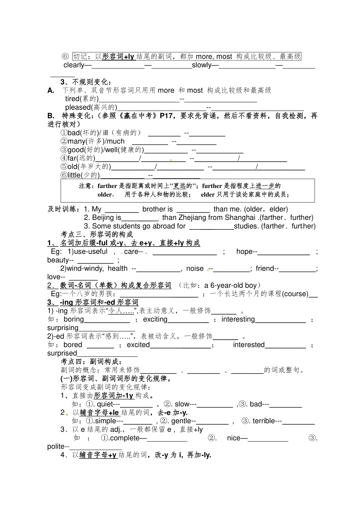 1.人教版九年级英语专题复习导学案:形容词副词专题