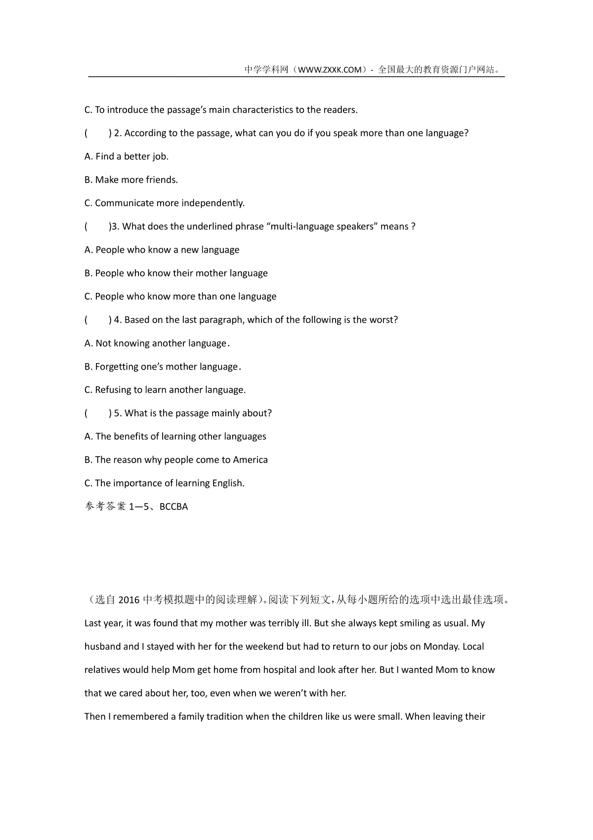 如果你想下载2016-2017学年英语外研版九下Moudle2阅读理解专题练习及答案DOC或PDF版,请点击本文末链接!