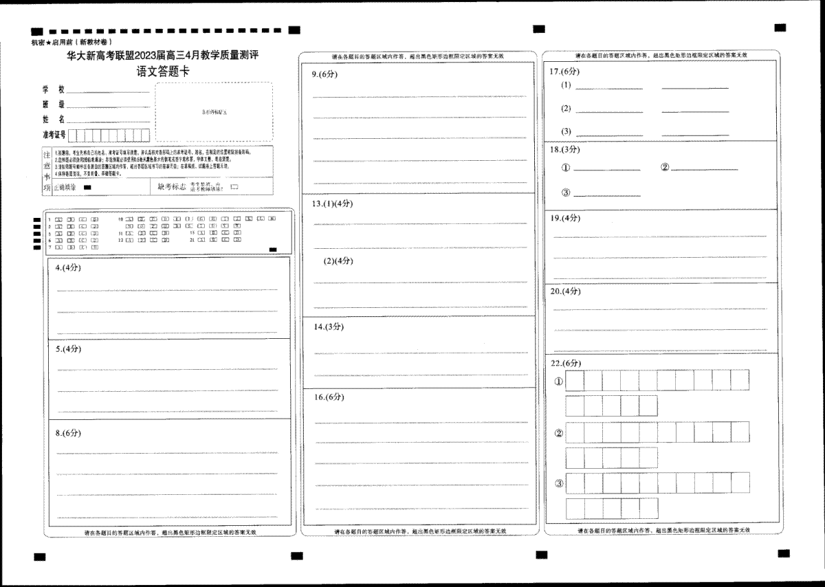 下载2023届4月理综全国卷语文答题卡PDF格式或doc