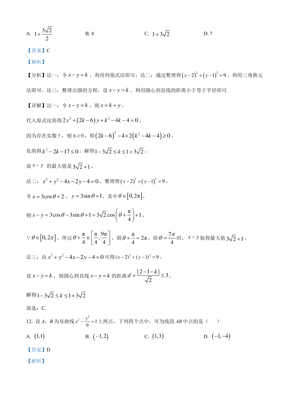2023届黑龙江省大庆市高三第三次模拟考试 数学答案