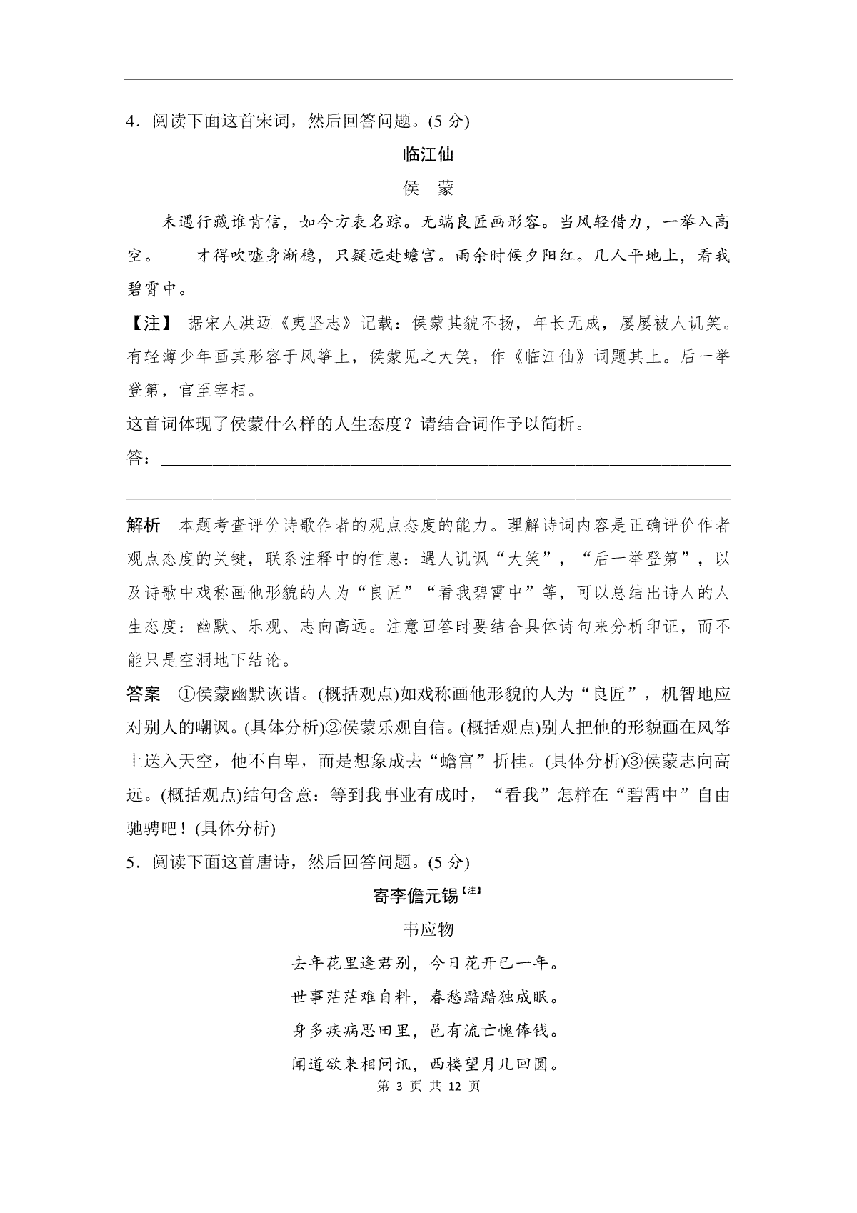 一、高考语文专题训练定时规范:评价诗歌的思想内容和具体态度