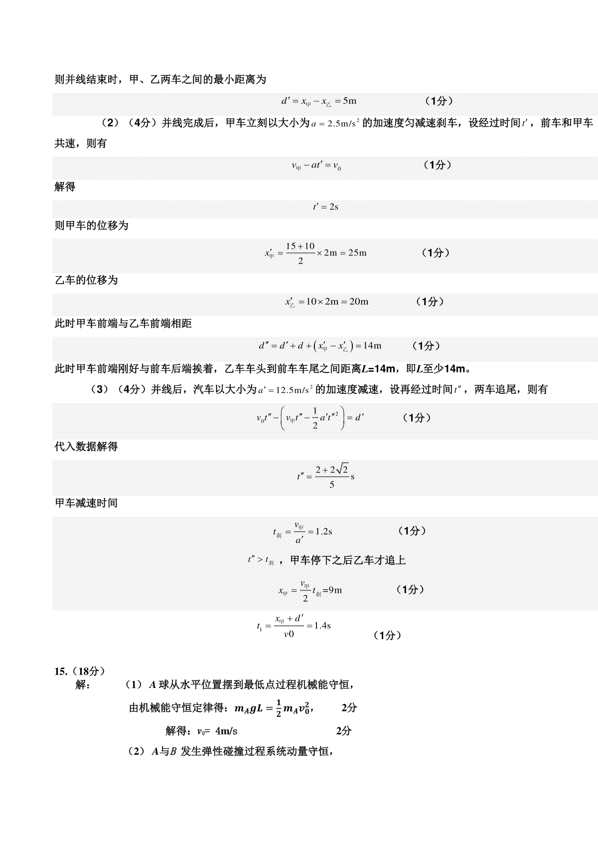 一、吉林省吉林市2023-2024学年高三上学期第一次模拟考试 物理答案