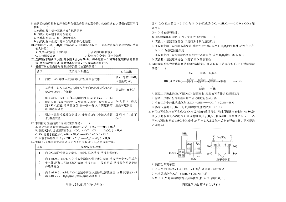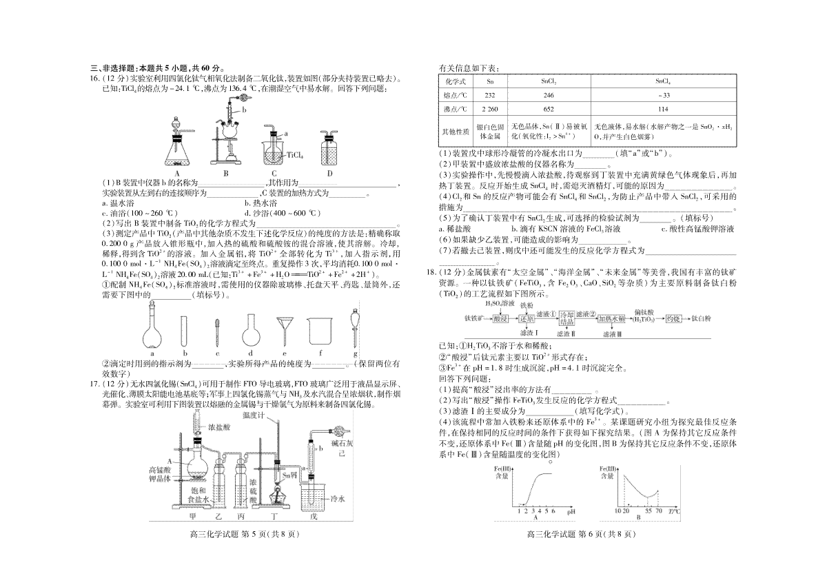 一、山东省普高大联考2023-2024学年高三上学期11月联合质量测评 化学