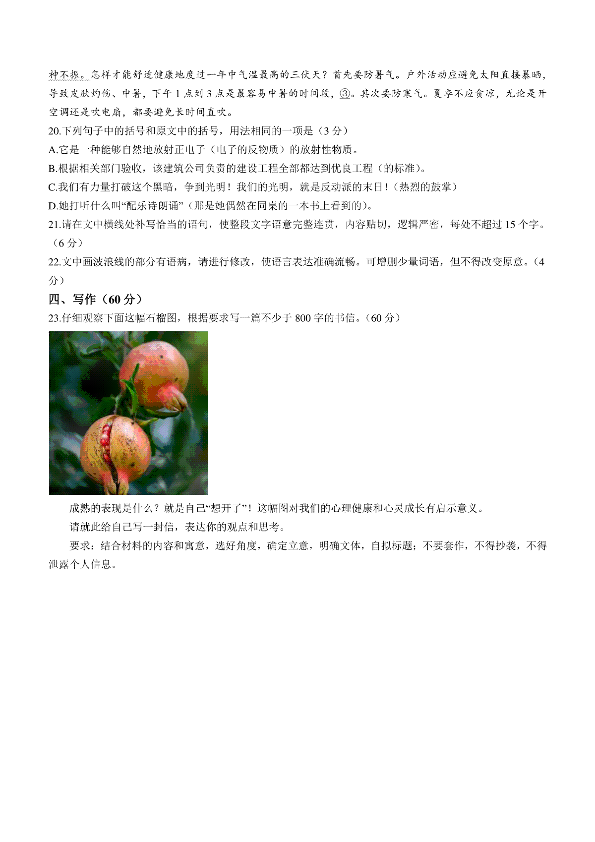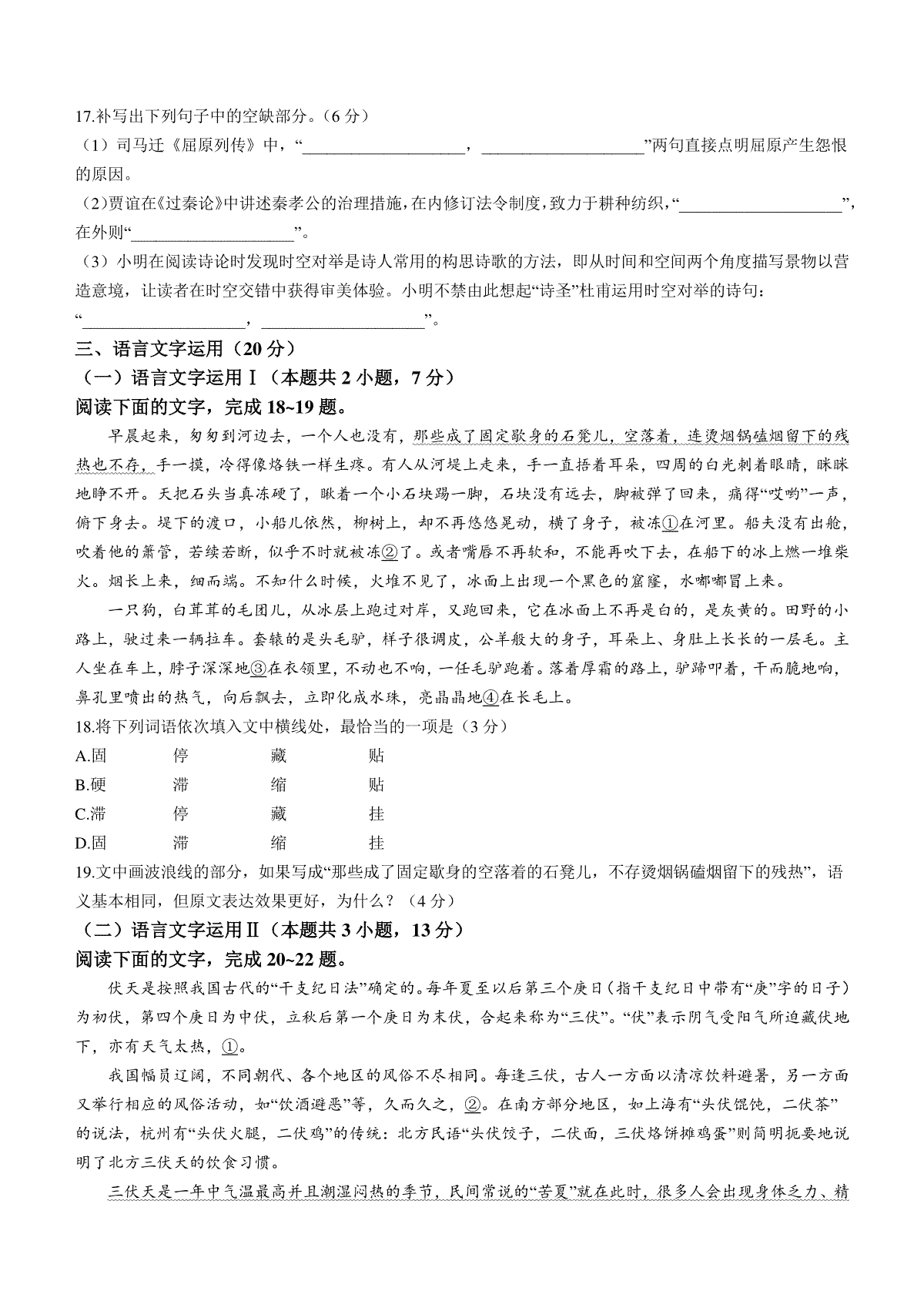 一、云南省曲靖市第一中学2023-2024学年高三上学期第四次月考 语文