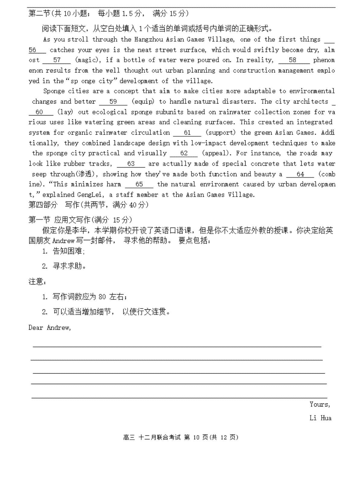 英语-重庆市拔尖强基联盟(西南大学附中 重庆育才中学)2023-2024学年高三上学期12月月考于近期开考,本次考试对考生对知识的掌握参考价值大,为了方便大家复习掌握错题!小编在下文为大家准备了英语-重庆市拔尖强基联盟(西南大学附中 重庆育才中学)2023-2024学年高三上学期12月月考试卷及答案解析详情,仅供考生参考。