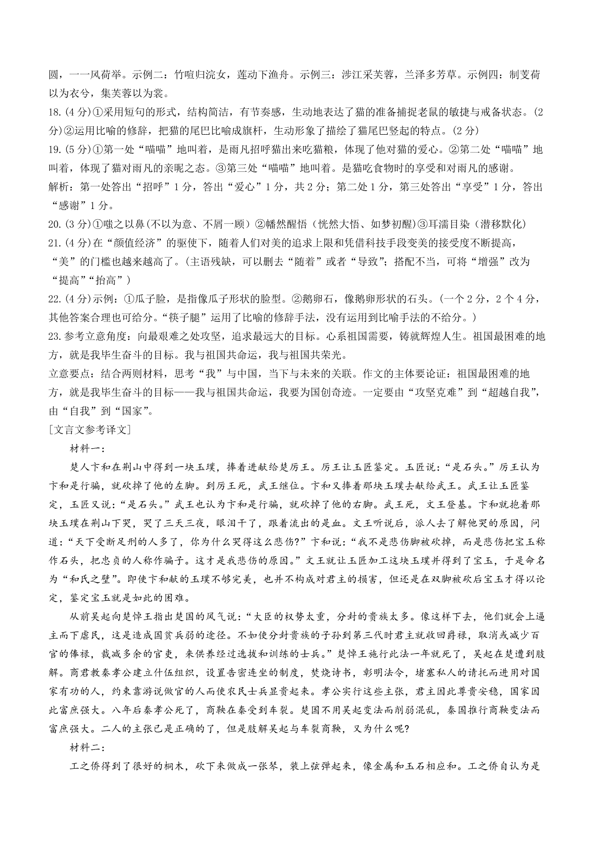 云南省昆明市第一中学2023-2024学年高三第八次高考适应性考试语文答案