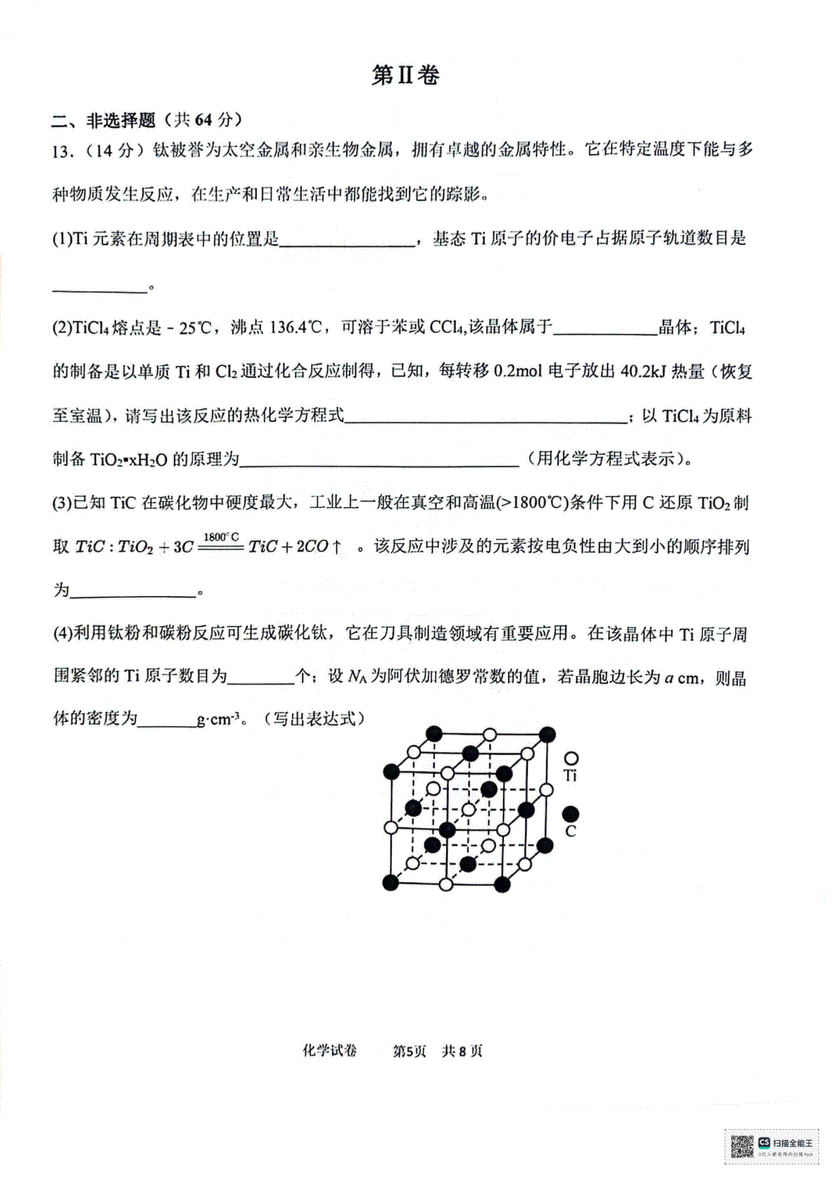 如果你想下载天津市十二区县重点校2024届高三下学期第一次模拟考试 化学 PDF版含答案DOC或PDF版,请点击本文末链接!
