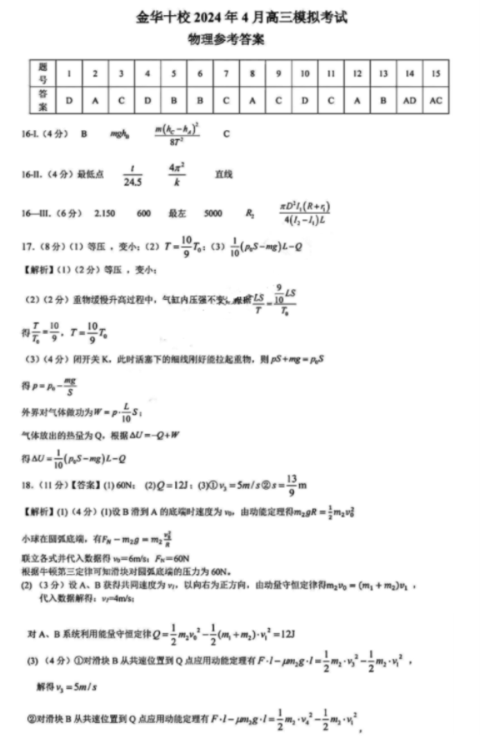 2024浙江金华十校高三4月二模考试于近期开考,本次考试对考生影响力大试题参考价值大,为方便大家复习,小编在下文为大家整理了浙江金华十校2024高三4月二模考试的物理试题及答案,供大家查看!
