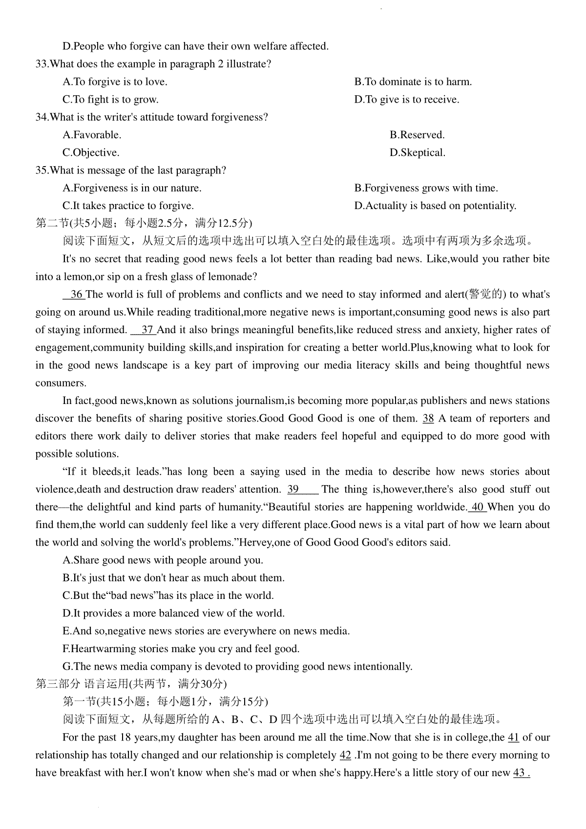 如果你想下载2024届浙江省杭州市高三二模英语试卷DOC或PDF版,请点击本文末链接!
