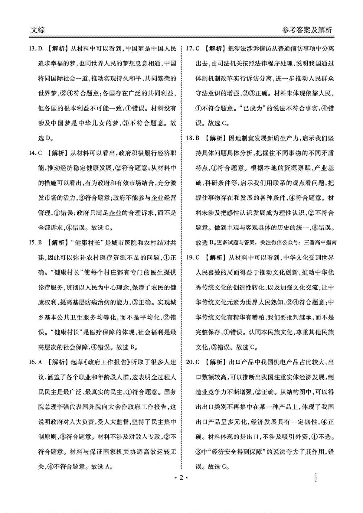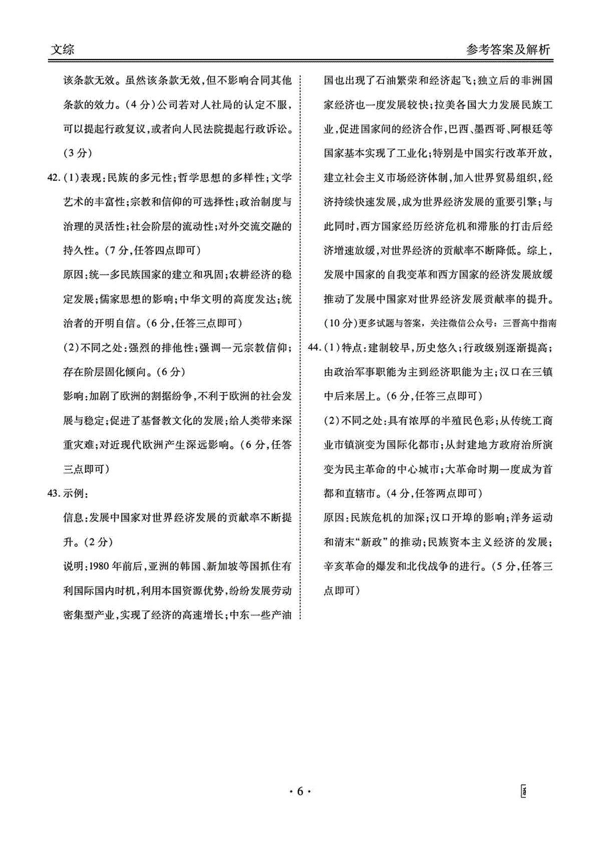 一、衡水金卷2024届高三4月大联考(新教材)文综答案