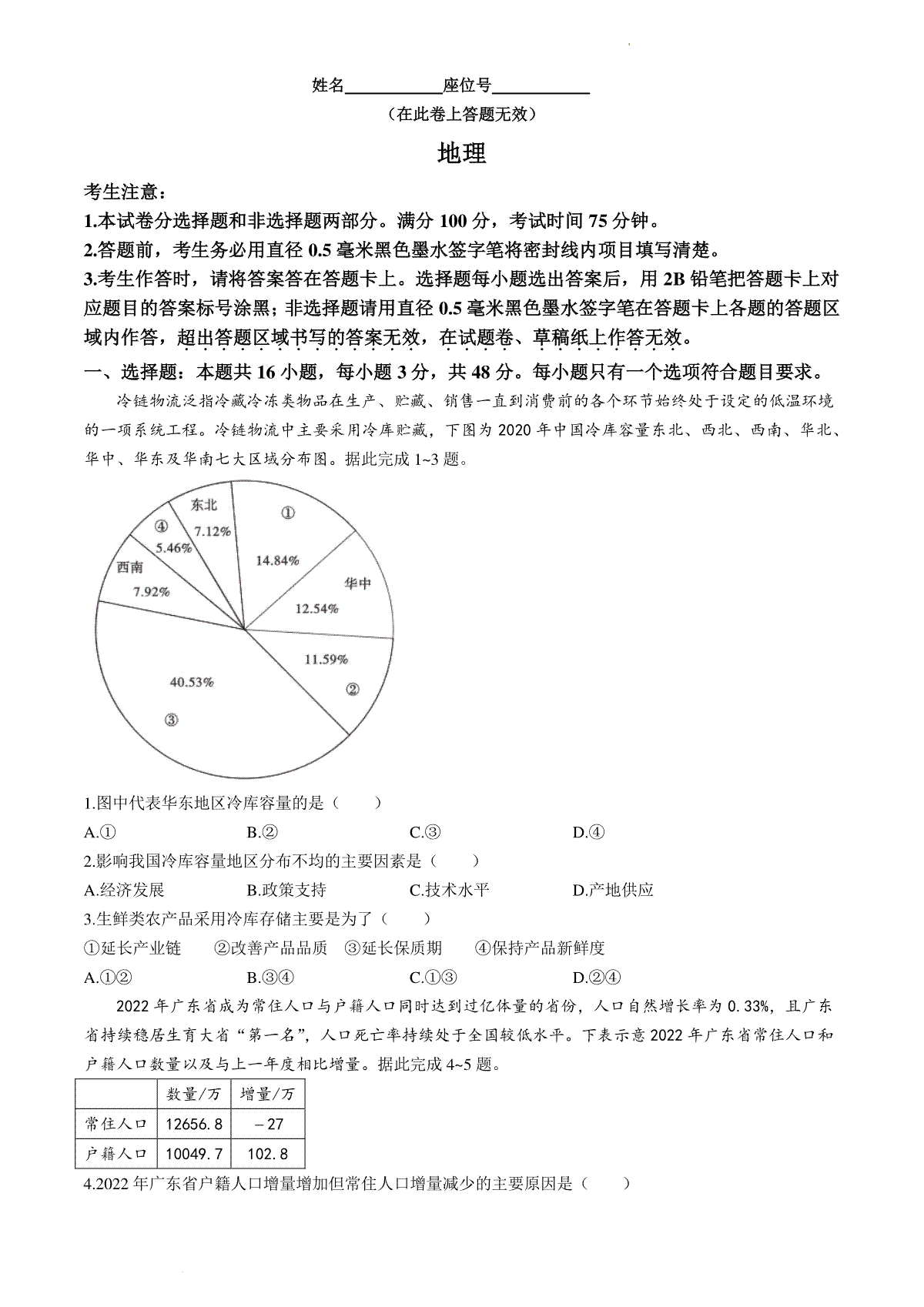 一、2024届安徽省皖江名校联盟高考二模地理试题