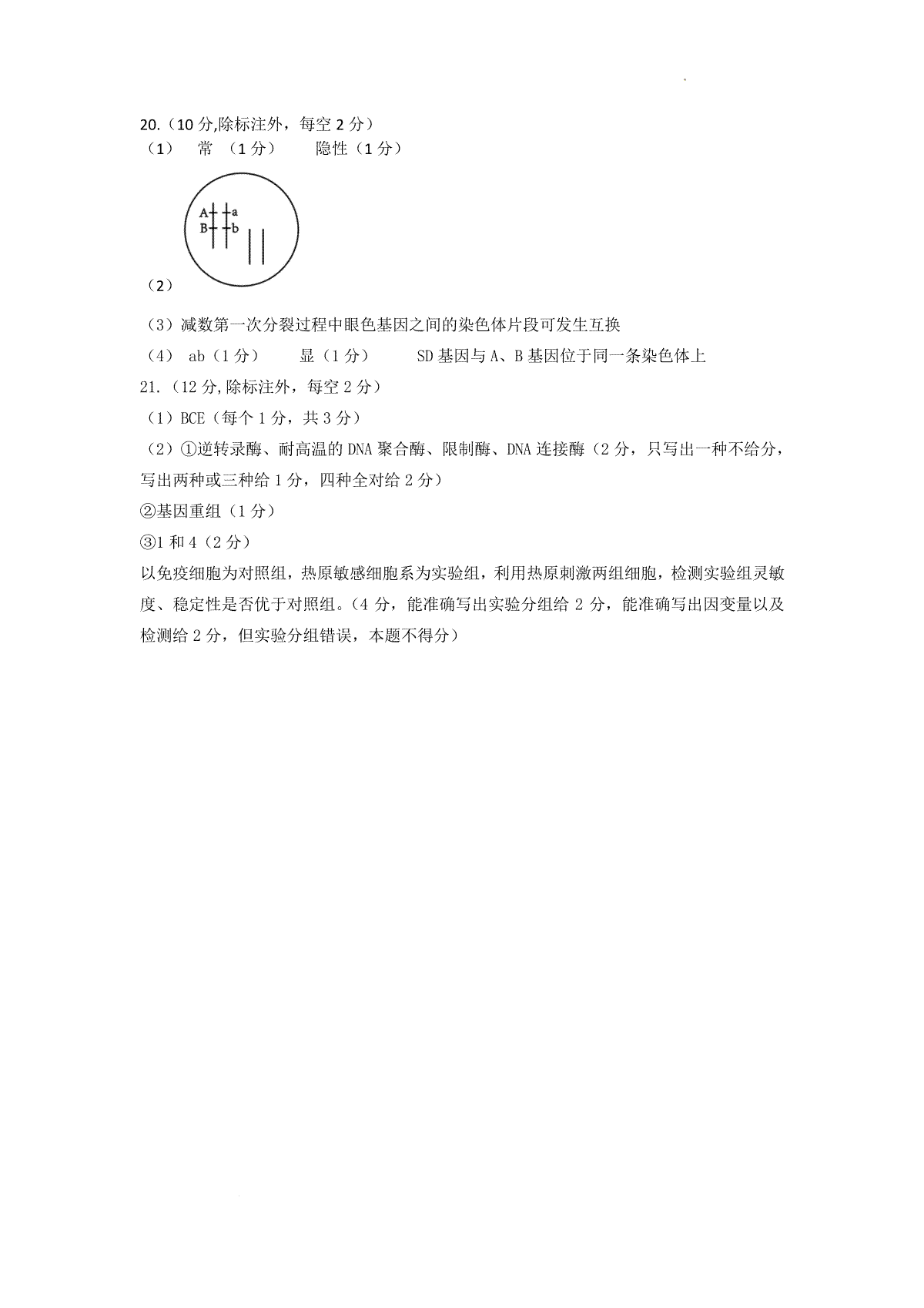 一、2024届江西省景德镇市高三第三次质量检测生物参考答案