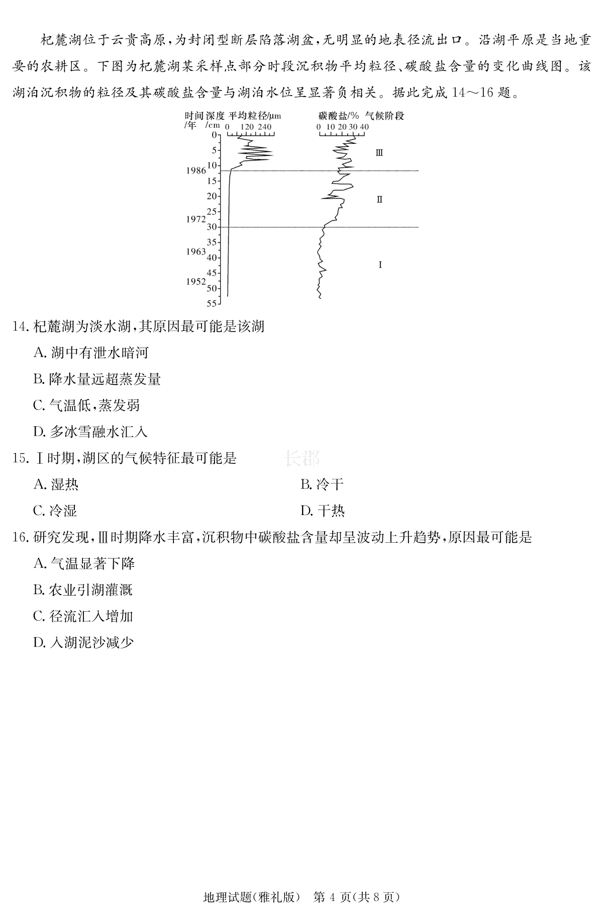 湖南省长沙市雅礼中学2023-2024学年高三下学期月考(八)雅礼中学高三地理8次——学演于近期开考,本次考试对考生对知识的掌握参考价值大,为了方便大家复习掌握错题!小编在下文为大家准备了湖南省长沙市雅礼中学2023-2024学年高三下学期月考(八)雅礼中学高三地理8次——学演试卷及答案解析详情,仅供考生参考。