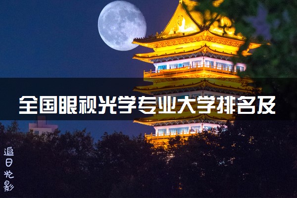 在全国眼视光学专业大学排名中,南京医科大学全国排名第一位,四川大学位居第二位,天津医科大学雄居第三,紧随其后的大学有中国医科大学、南京中医药大学。2024年想读眼视光学专业的高中尖子生,可以重点选这些院校。