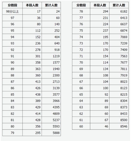 山西2024高考体考成绩分段表如下:其中87分的累计人数是2713人;78的累计人数是6182人;74分的累计人数是7069人。
