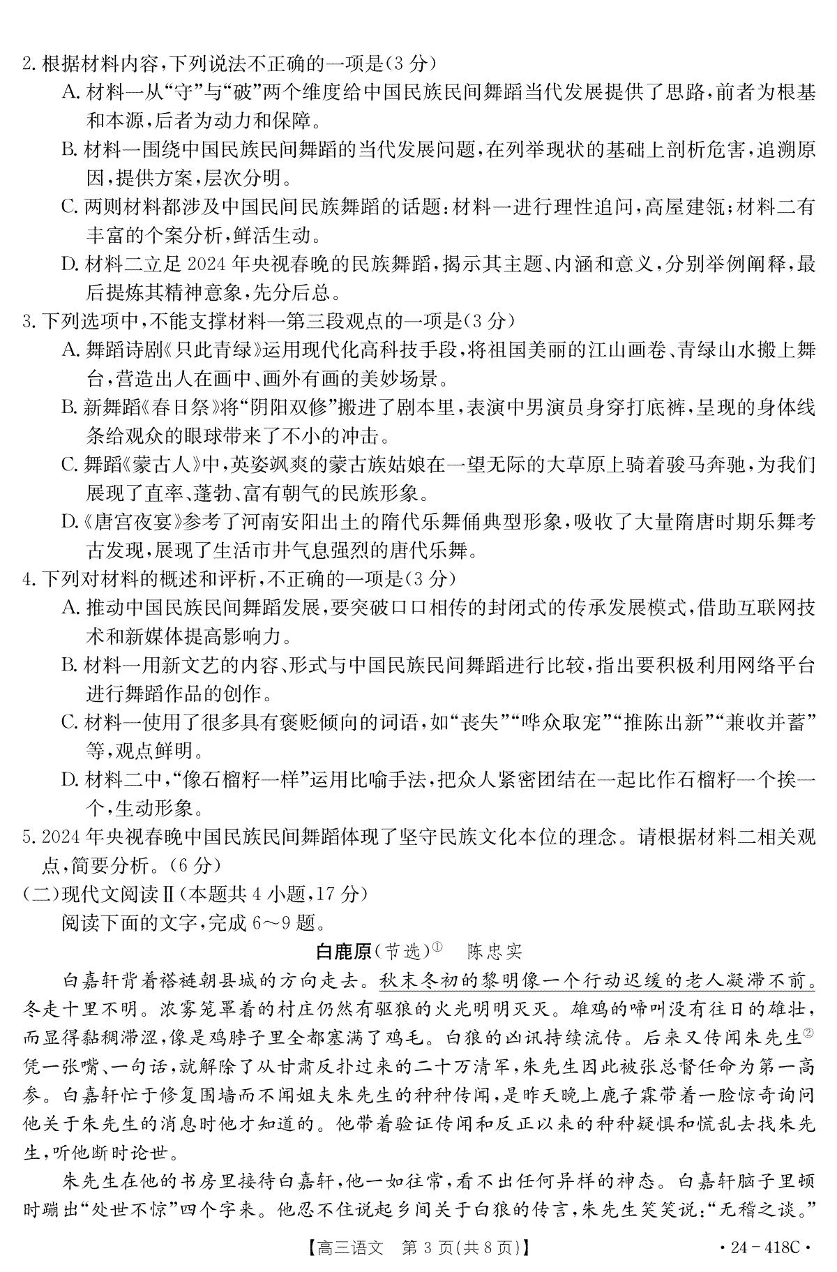 湖北省十堰市2023-2024学年高三下学期4月调研考试语文试题于近期开考,本次考试对考生对知识的掌握参考价值大,为了方便大家复习掌握错题!小编在下文为大家准备了湖北省十堰市2023-2024学年高三下学期4月调研考试语文试题试卷及答案解析详情,仅供考生参考。