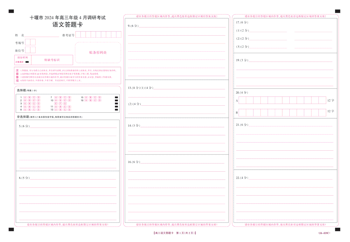 如果你想下载十堰市2024年高三4月调考数学答案DOC或PDF版,请点击本文末链接!