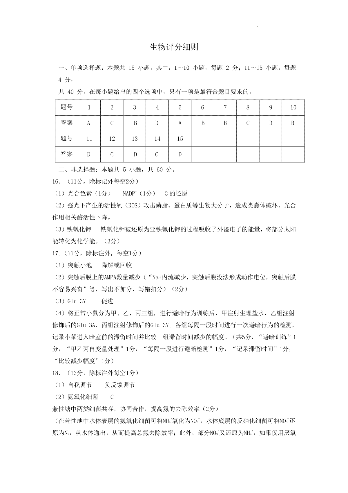 1.2024届福建省福州市高三下学期4月末质量检测(三模)生物试题+答案
