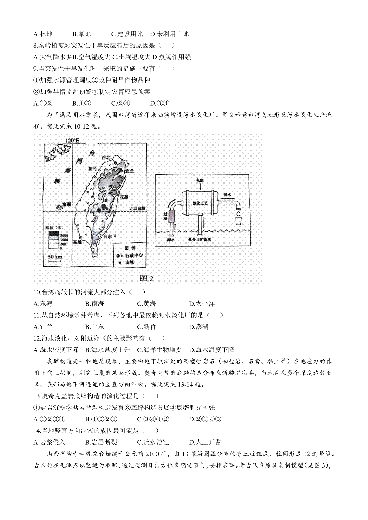 一、福建省福州市2023-2024学年高三下学期4月末质量检测地理试题(无答案)