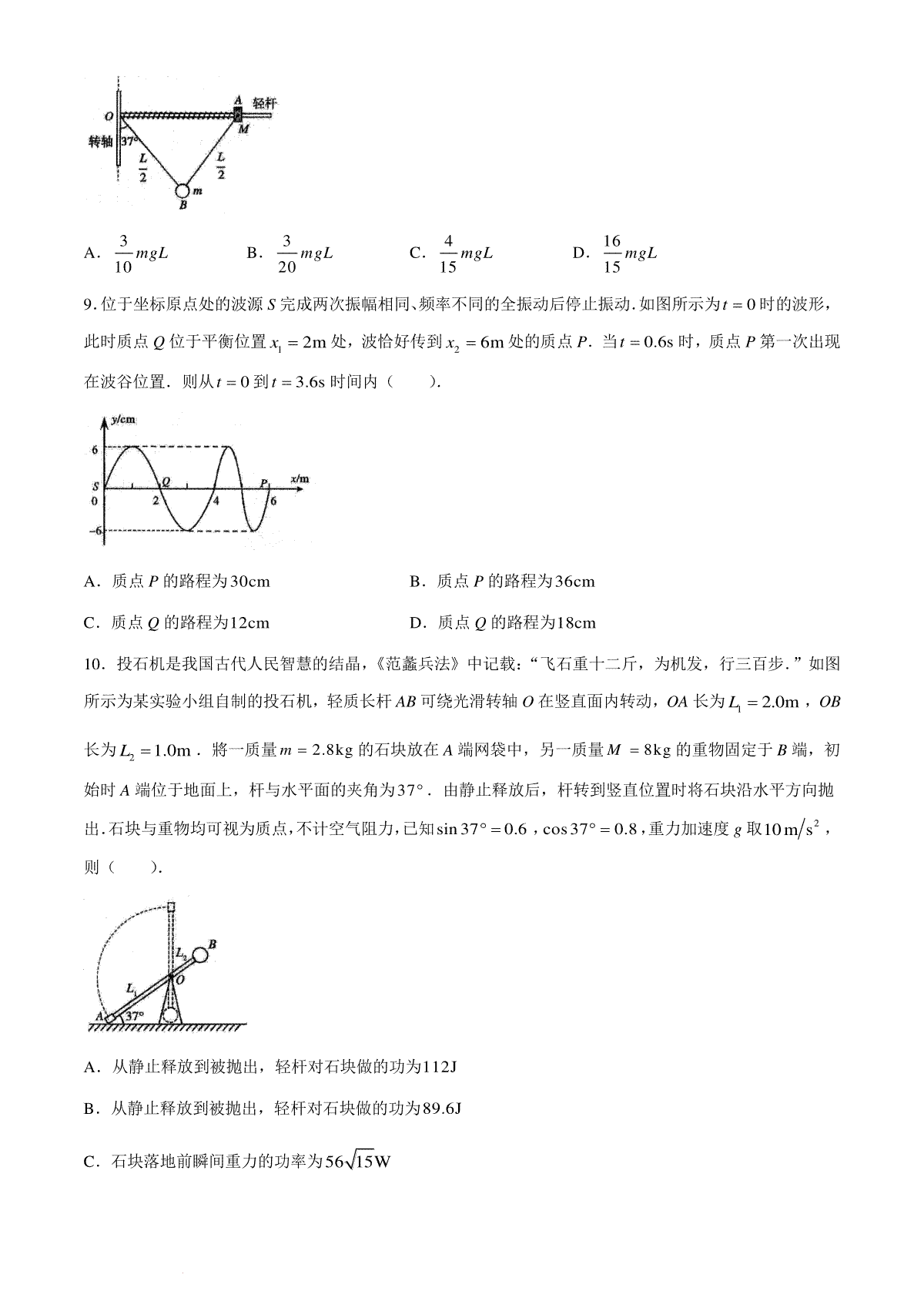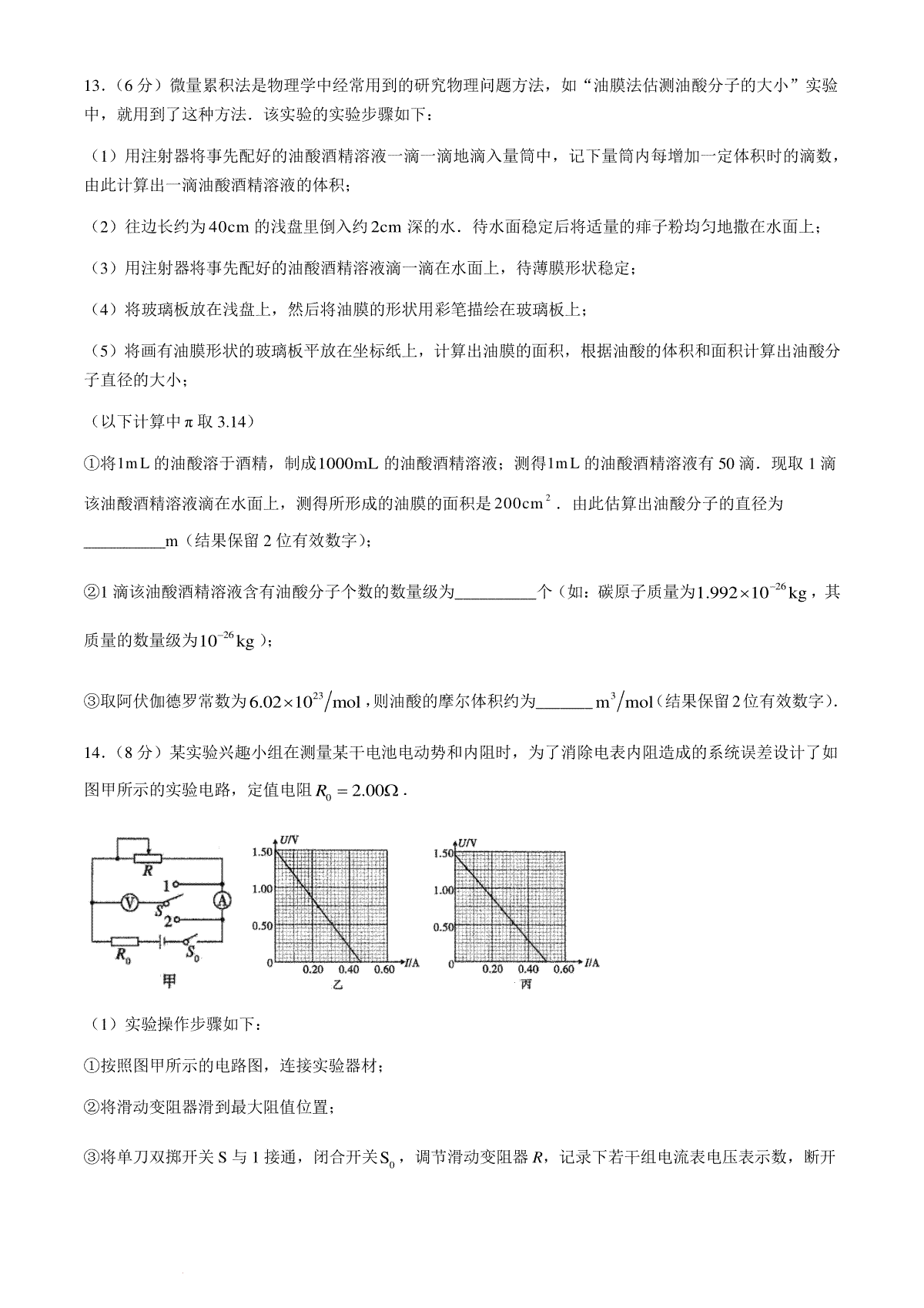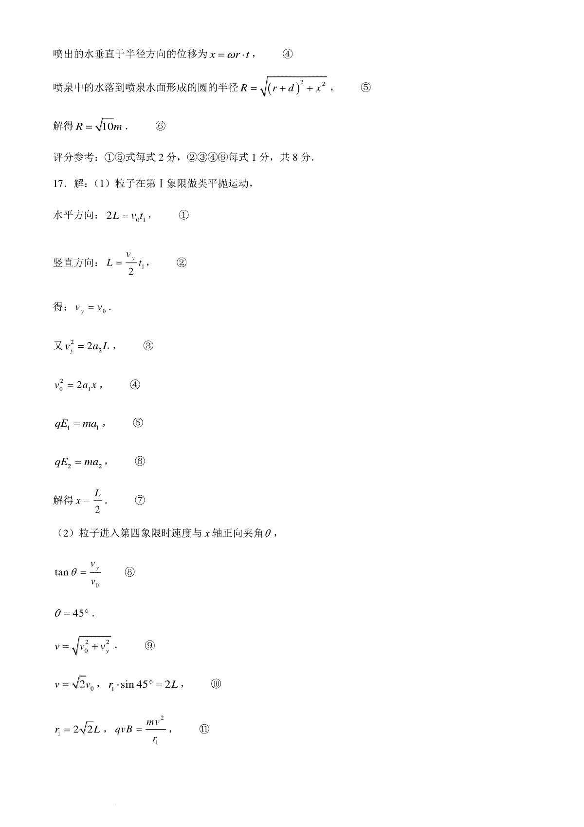 一、2024届山东省泰安市高三下学期二模物理试题+答案