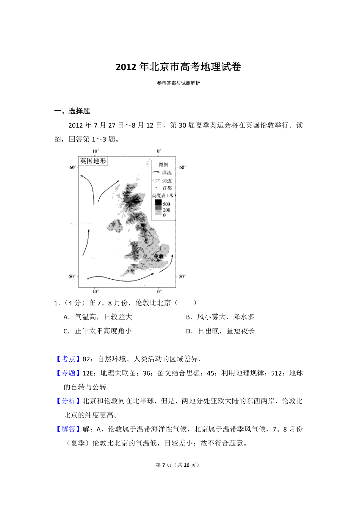 如果你想下载2012年北京市高考地理试卷(含解析版)DOC或PDF版,请点击本文末链接!