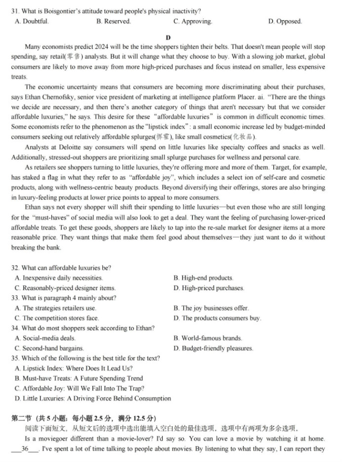 2024浙江温州市高三5月三模考试于近期开考,本次考试对考生影响力大试题参考价值大,为方便大家复习,小编在下文为大家整理了浙江温州市2024高三5月三模考试的英语试题及答案,供大家查看!