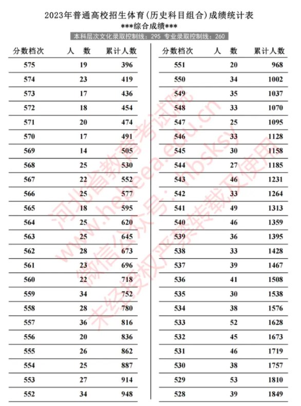 | 河北 | 2023 | 历史类 | 体育类(本科) | 295 |