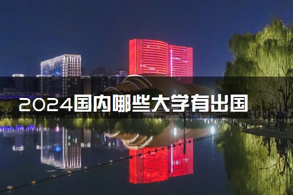 2024国内有出国留学项目的大学有:北京外国语大学、北京理工大学、中国传媒大学、中央财经大学、首都师范大学、外交学院、北京语言大学、电子科技大学、南京理工大学、上海财经大学、中国人民大学、西北大学、温州大学、华南师范大学、深圳大学、广东财经大学、华南理工大学、南昌大学等。