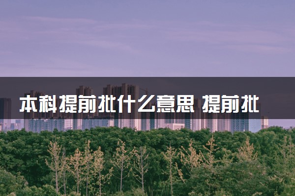 本科提前批是在本科一批之前录取的学校,是一些有特殊要求特殊政策的学校。按照国家有关规定,将一部分类别、性质、专业基本相同或相近的学校和经教育部批准实行提前录取的一些学校集中起来,在大规模招生之前进行录取,这部分院校即提前录取院校。