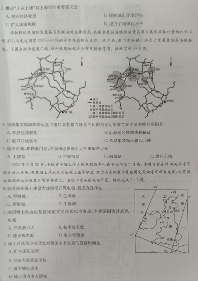 1.九师联盟2024高三5月考前押题(新高考)地理试题及答案解析