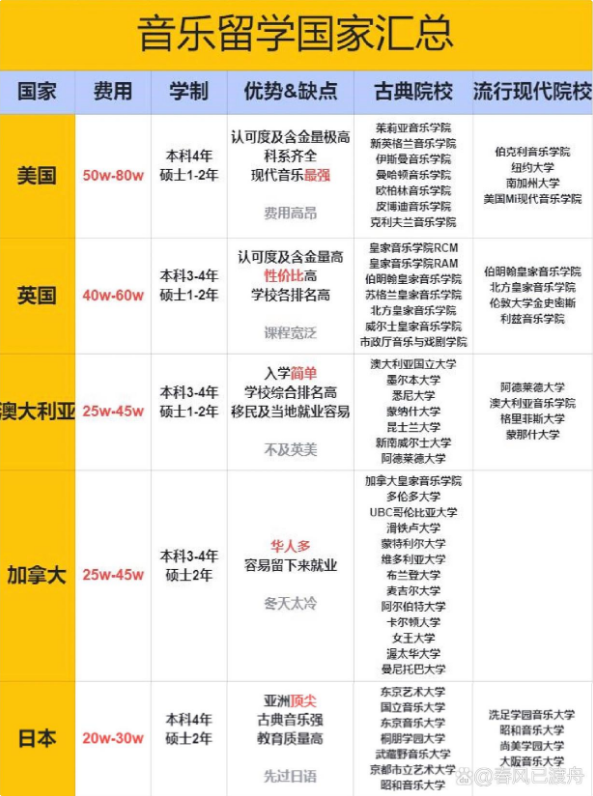 意大利是学习音乐的理想留学目的地。这里拥有世界闻名的音乐学院,如米兰威尔第音乐学院和帕尔马皇家音乐学院等,培养出了众多著名的艺术家。意大利音乐以古典乐器演奏、声乐和交响乐为主,对欧洲音乐的音阶、和弦、符号及16世纪晚期的歌剧发展有着重要的创新和贡献。此外,意大利的学费相对较低,大部分学校甚至免费,生活费也相对较低,同时还可以游览欧洲各国和古希腊罗马遗迹,品尝世界闻名的美食。