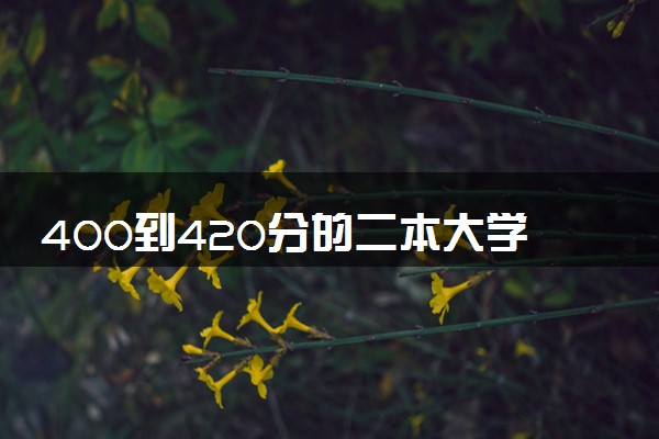 高考400到420分左右能上的大学一般有:大连医科大学中山学院、吉林建筑科技学院、沈阳城市建设学院、长春大学旅游学院、上海中侨职业技术大学、东莞城市学院、广东理工学院、新疆天山职业技术大学等。
