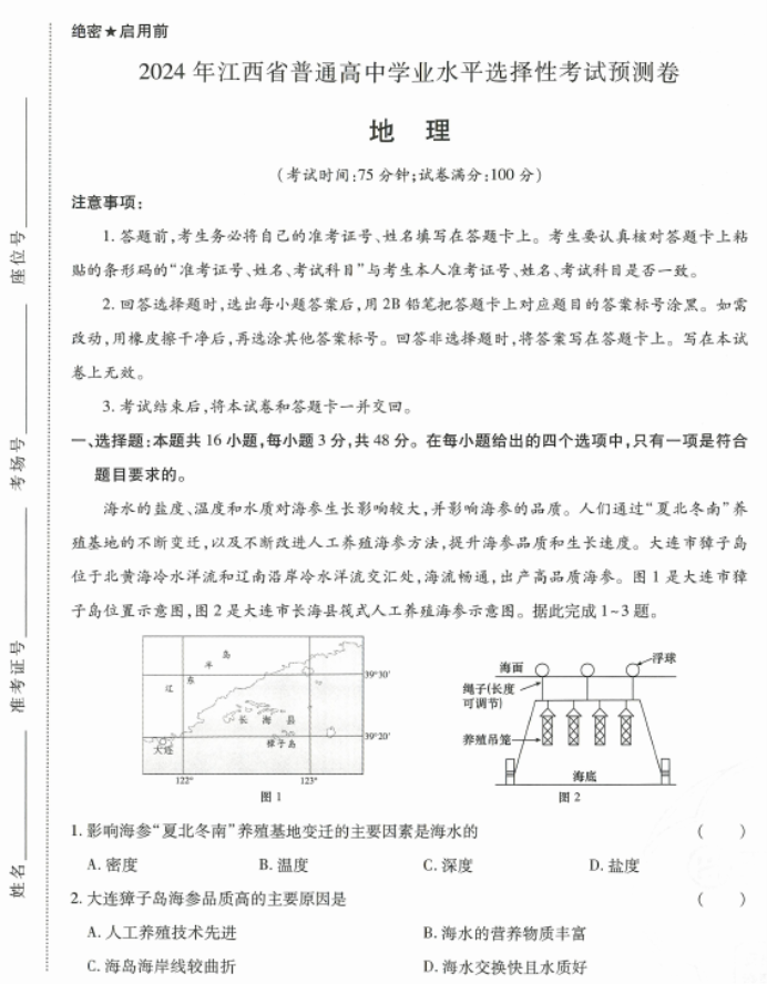 1.王后雄2024高考押题预测卷(江西版)地理试题及答案解析
