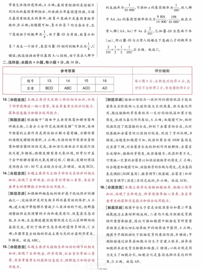 王后雄2024高考押题预测卷(江西版)生物试题及答案解析