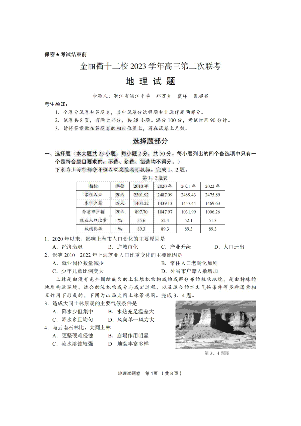 浙江省金丽衢十二校(七彩阳光联盟)2023学年高三第二次联考语文卷