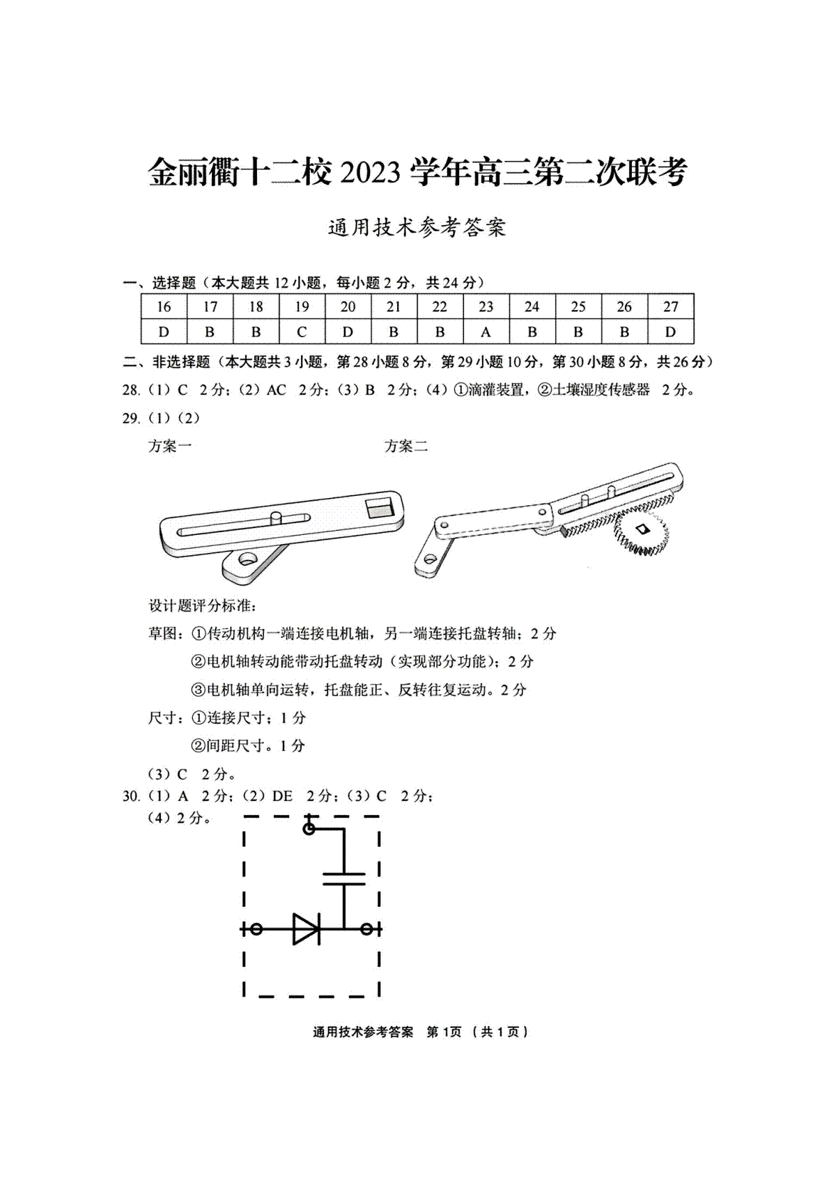 浙江省金丽衢十二校(七彩阳光联盟)2023学年高三第二次联考信息技术参考答案
