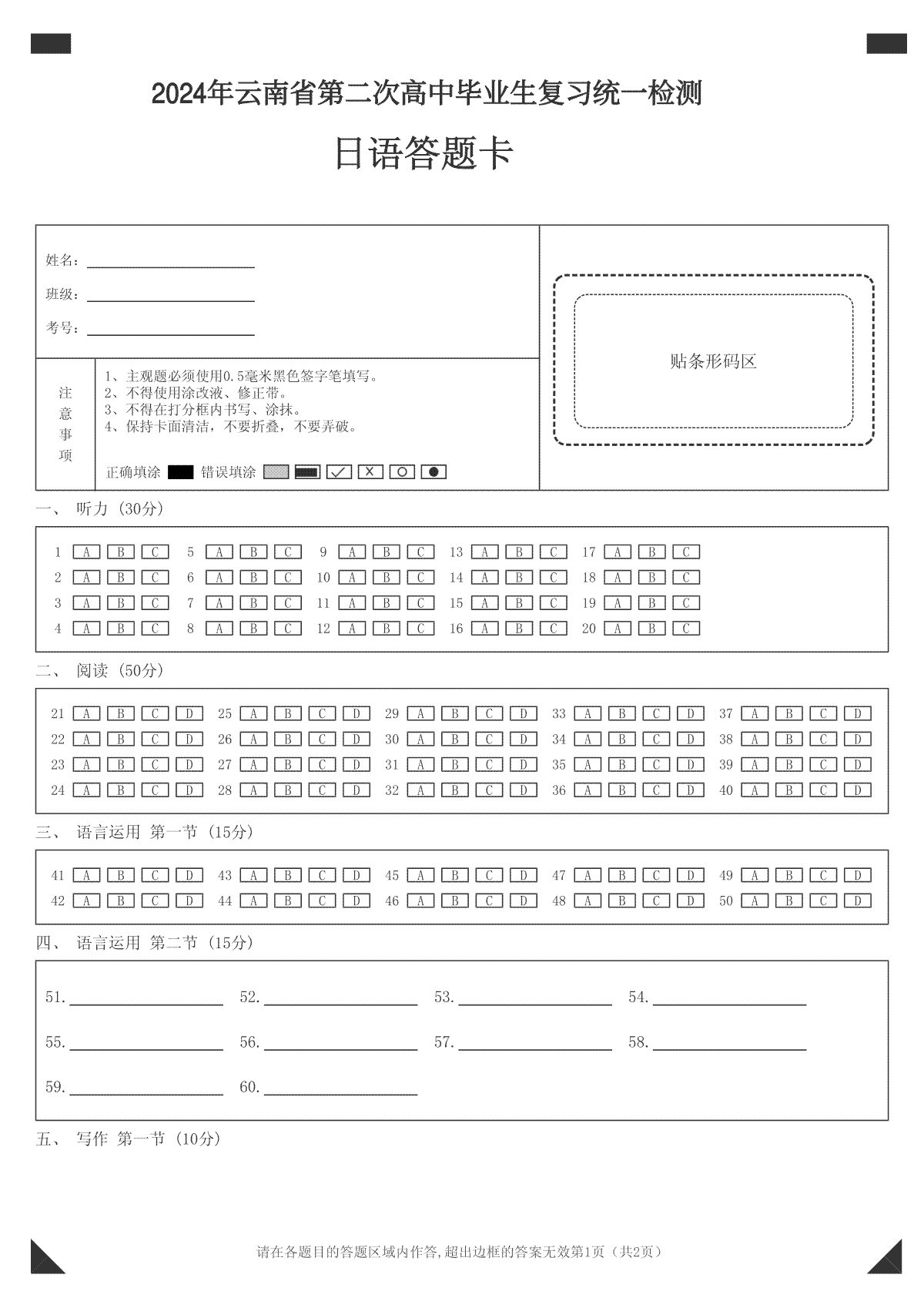 2024届云南省高三下学期第二次高中毕业生复习统一检测语文试题