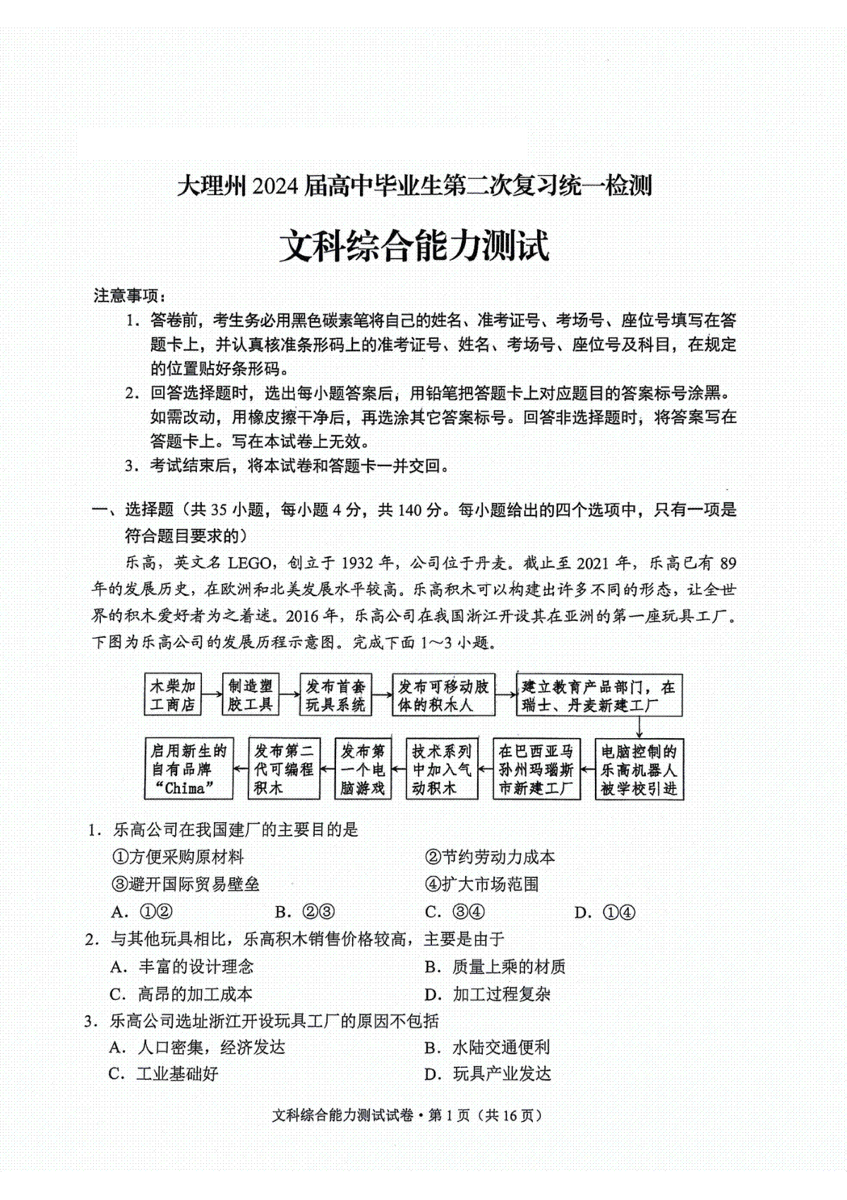 2024届云南省大理白族自治州高三第二次复习统一检测语文试题