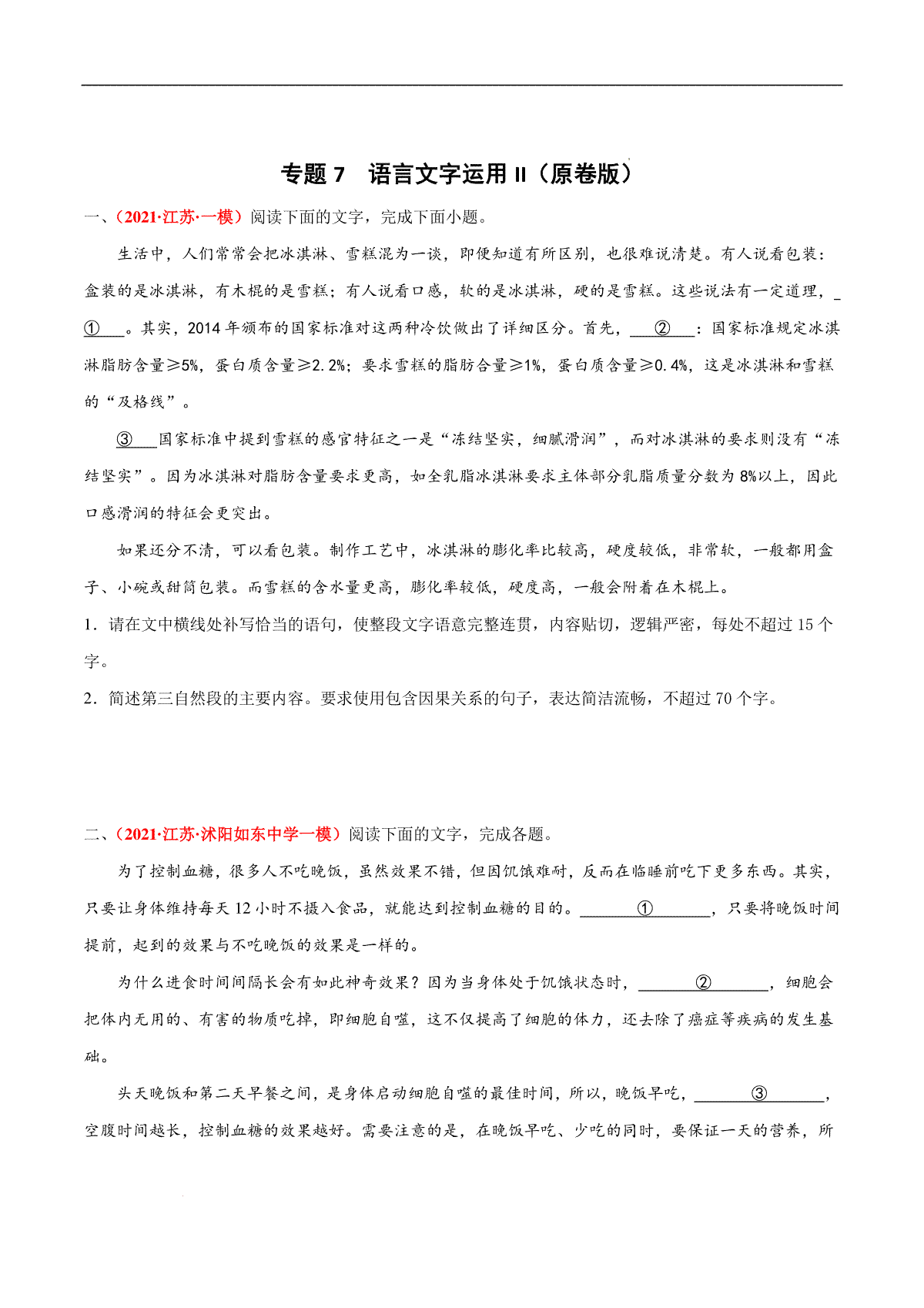专题7 语言文字运用II-2022年高考语文模拟题分项汇编(江苏专用)(原卷版)