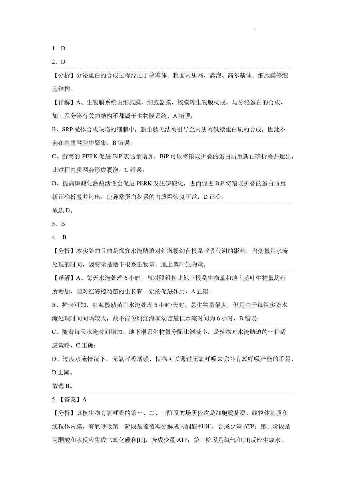 福建省莆田市五校联盟2023-2024学年高三上学期期中考试 生物答案