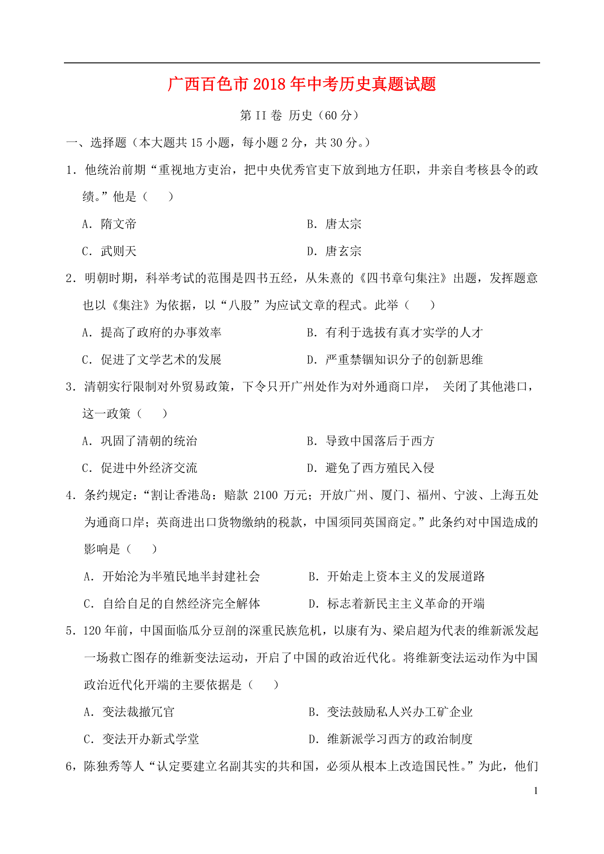 精品解析:2022年广西百色市中考化学真题(原卷版)